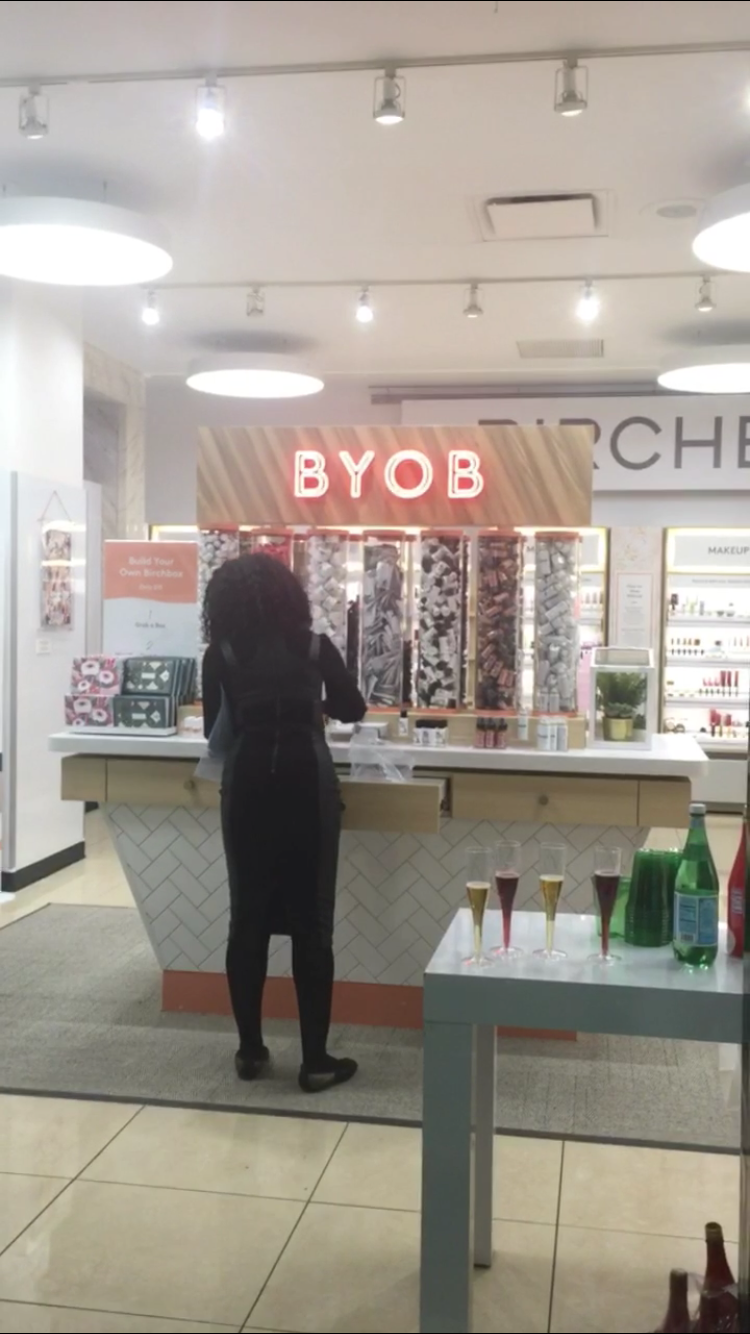 Let me start off by talking about the vibe and decor of the Birchbox section: It was refreshing. I walk in and am immediately greeted by the Sales Associates and the Build Your Own Box bar (pictured below). Everything was bright, colorful and inviting.